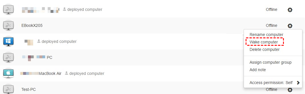 Step 4. Set Up Splashtop: Open the Splashtop Business app, go to the computer list, and right-click on the offline computer you want to wake. Click “Wake Up” and voila! Your computer should spring to life.