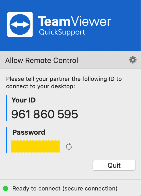 Upon launching the executable, the software connects to the central routing servers and generates a unique 9-digit ID along with a randomized, temporary password. The user shares these credentials with the IT technician via phone, chat, or email. The technician then inputs the ID and password into their full TeamViewer client to initiate the connection. Alternatively, organizations with customized modules can generate a session link; when the user clicks the link and runs the file, they automatically appear in the support team's service queue without needing to exchange passwords manually.