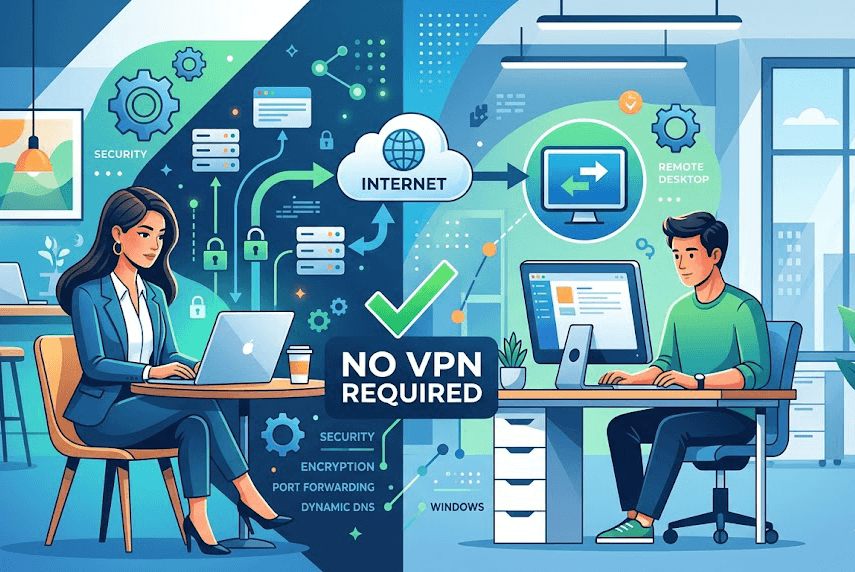 Accessing your office workstation or home PC from a different location is no longer a luxury; it is a necessity. For years, the gold standard for secure access was the Virtual Private Network (VPN). However, in 2026, many users and IT professionals are looking for ways to achieve Windows Remote Desktop without VPN due to the high latency, complex setup, and "all-or-nothing" network access that traditional VPNs provide.