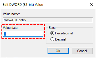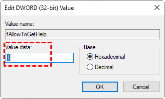 Step 3. Double-click fAllowFullControl first and set its value data to 1. Then do the same to fAllowToGetHelp.