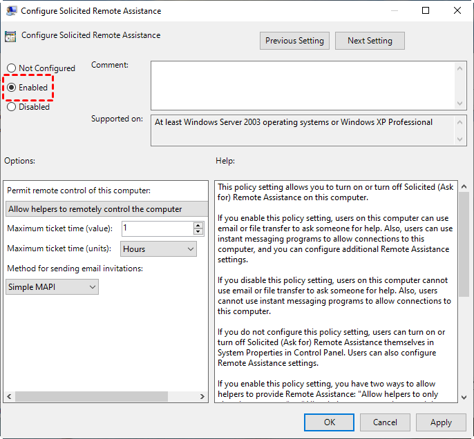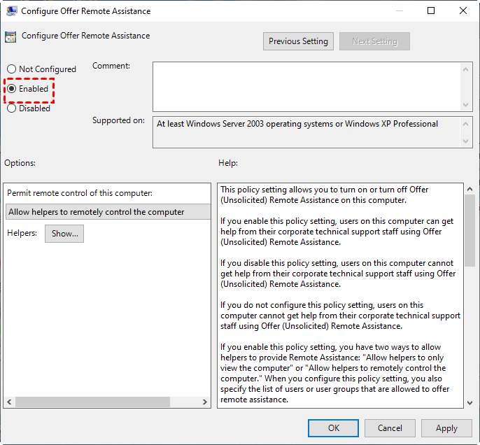 Solution 3. Enable Remote Assistance in Group Policy Editor