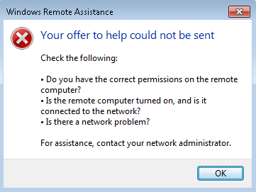 I’m running Remote Assistance in Windows 10. I chose Help Someone who has invited you, Advanced connection option, entered the IP, selected the user, but only received an error message: Your offer to help could not be sent. Could someone tell me why and how can I solve this problem?”