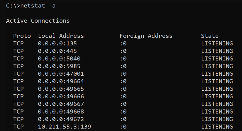 Ketidakhadiran layanan pada port yang terkait adalah alasan lain mengapa kesalahan ini dapat terjadi. Anda dapat menggunakan Command Prompt untuk memeriksa apakah koneksi perangkat remote sedang mendengarkan.
