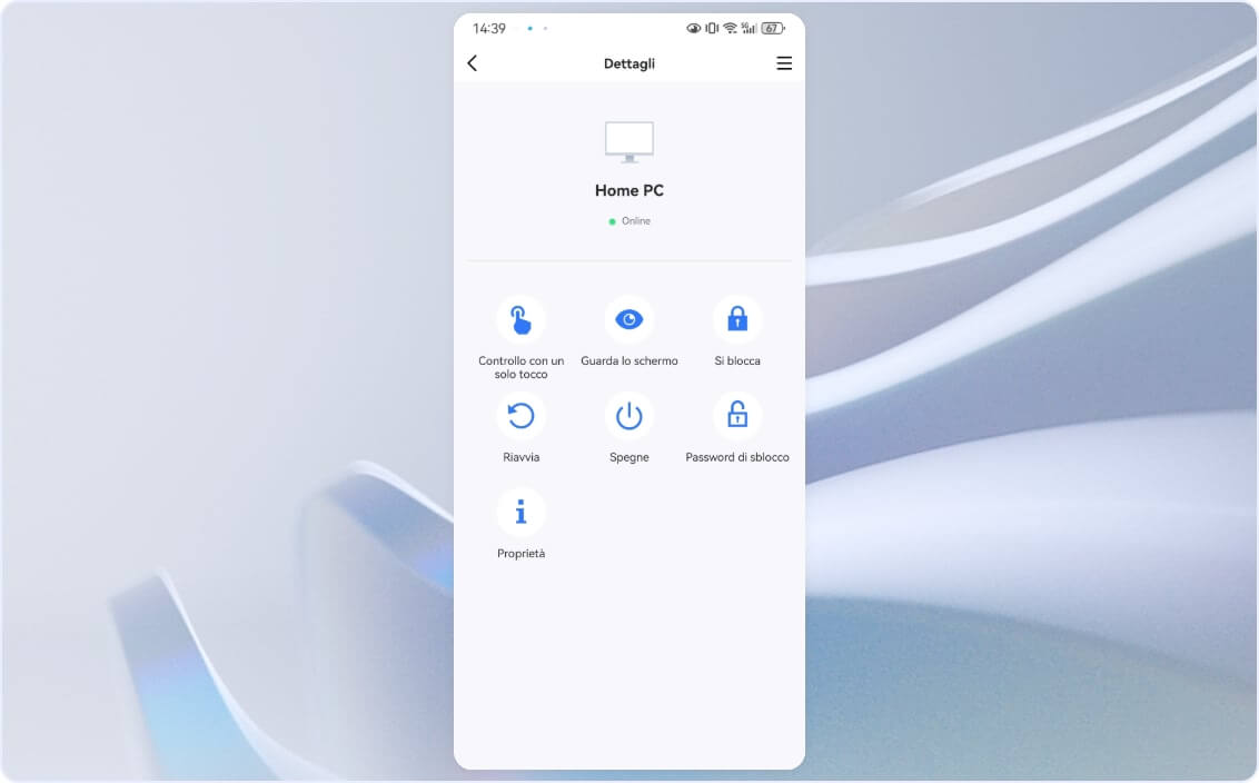 Controlla il PC dal tuo dispositivo Android senza sforzo. Accedi e gestisci facilmente i tuoi file e applicazioni sul PC, o fornisce supporto IT remoto ai computer dei tuoi clienti ovunque e in qualsiasi momento.