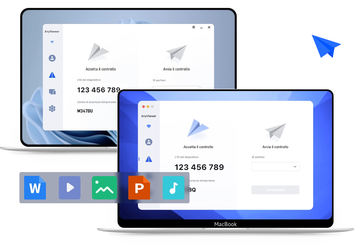 AnyViewer funziona su Windows e Mac, permettendoti di condividere qualsiasi file tra dispositivi in modo fluido. Nessuna preoccupazione per le limitazioni del sistema operativo o problemi di compatibilità.