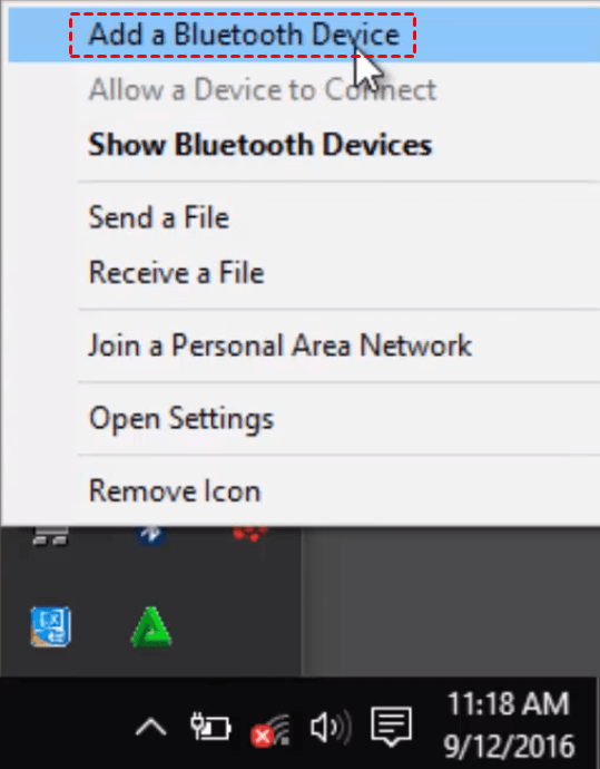 Passaggio 4. Cliccare su "Mostra icone nascoste" e fare clic destro sull"icona "Bluetooth" e scegliere "Aggiungi un dispositivo Bluetooth".