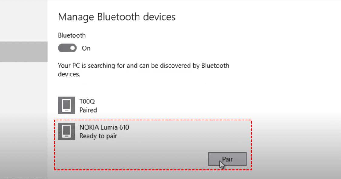 Passaggio 5. Nella finestra "Gestisci dispositivi Bluetooth", attendere la ricerca fino a quando appare il telefono da collegare. Quindi, sceglierlo e fare clic su "Accoppia".