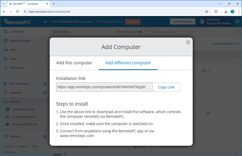 Passaggio 4. RemotePC genererà un link di distribuzione. Copia questo link e invialo via email/messaggio alla persona nella posizione remota.