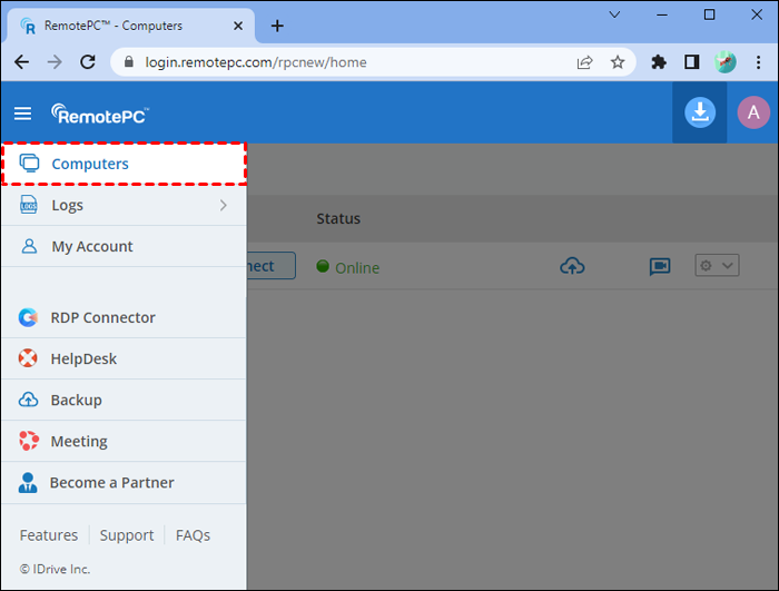 Passaggio 1. Accedi alla tua dashboard RemotePC tramite Chrome.