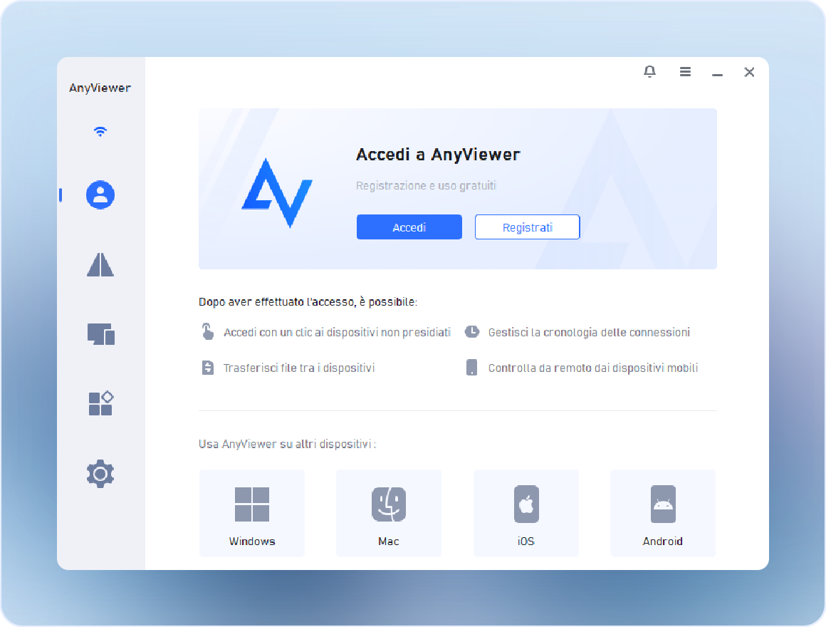 Scarica e installa AnyViewer su tutti i dispositivi che vuoi includere. Crea un account e accedi con le stesse credenziali su ogni dispositivo.