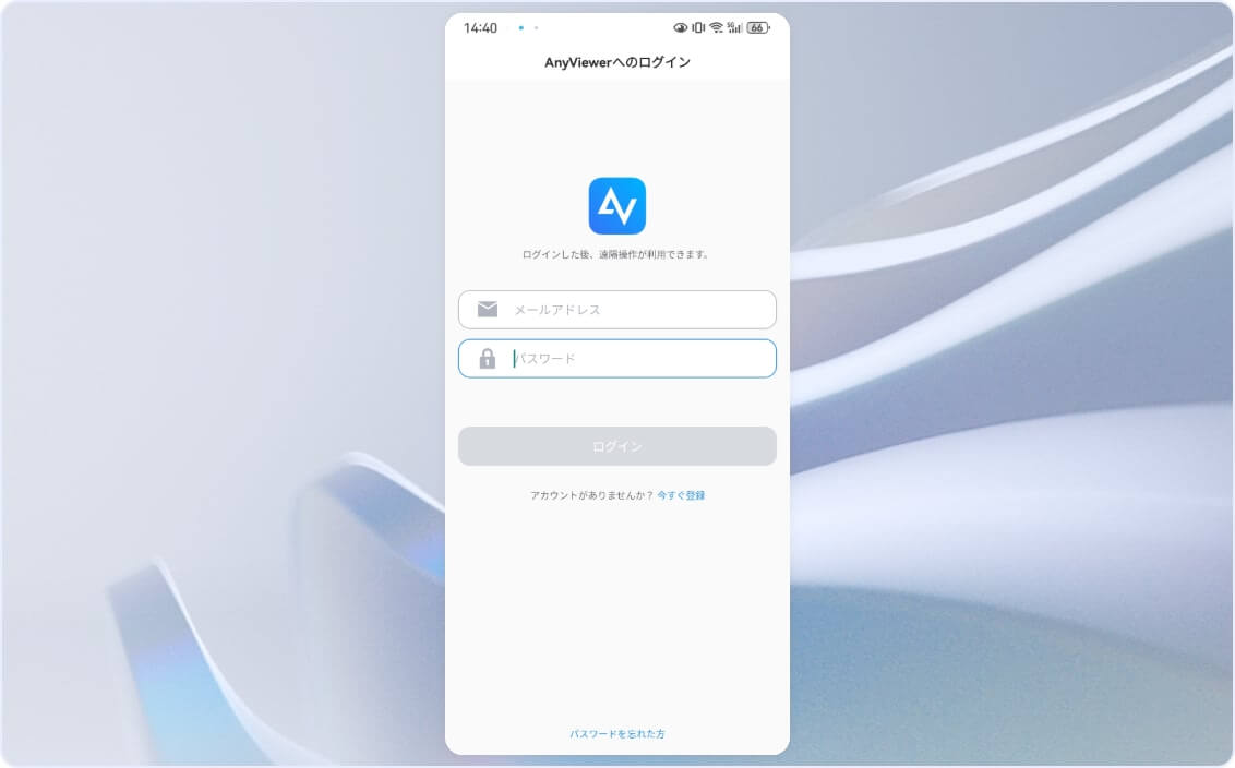 AndroidデバイスにAnyViewerをダウンロードし、アプリを開きます。コンピュータで使用したのと同じアカウント情報でログインしてください。