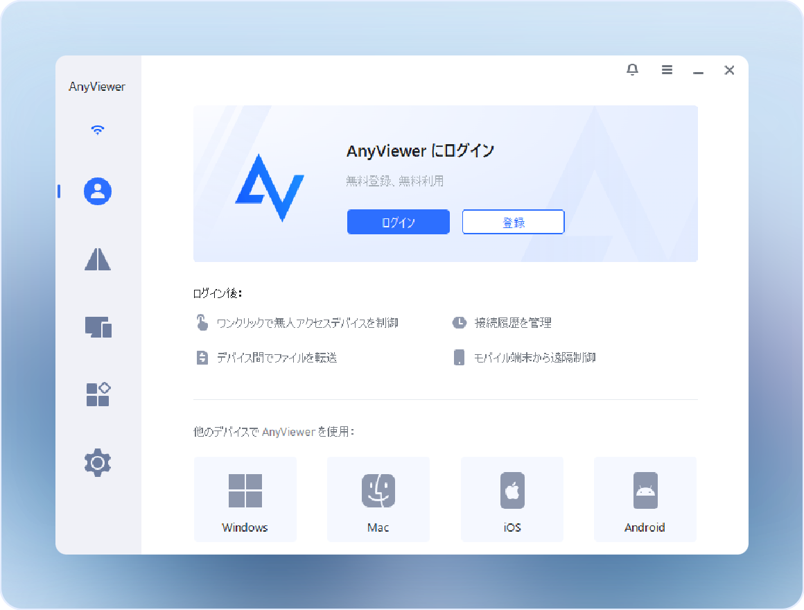管理したいすべてのデバイスにAnyViewerをダウンロードしてインストールします。アカウントを作成し、すべてのデバイスで同じアカウントを使ってログインします。