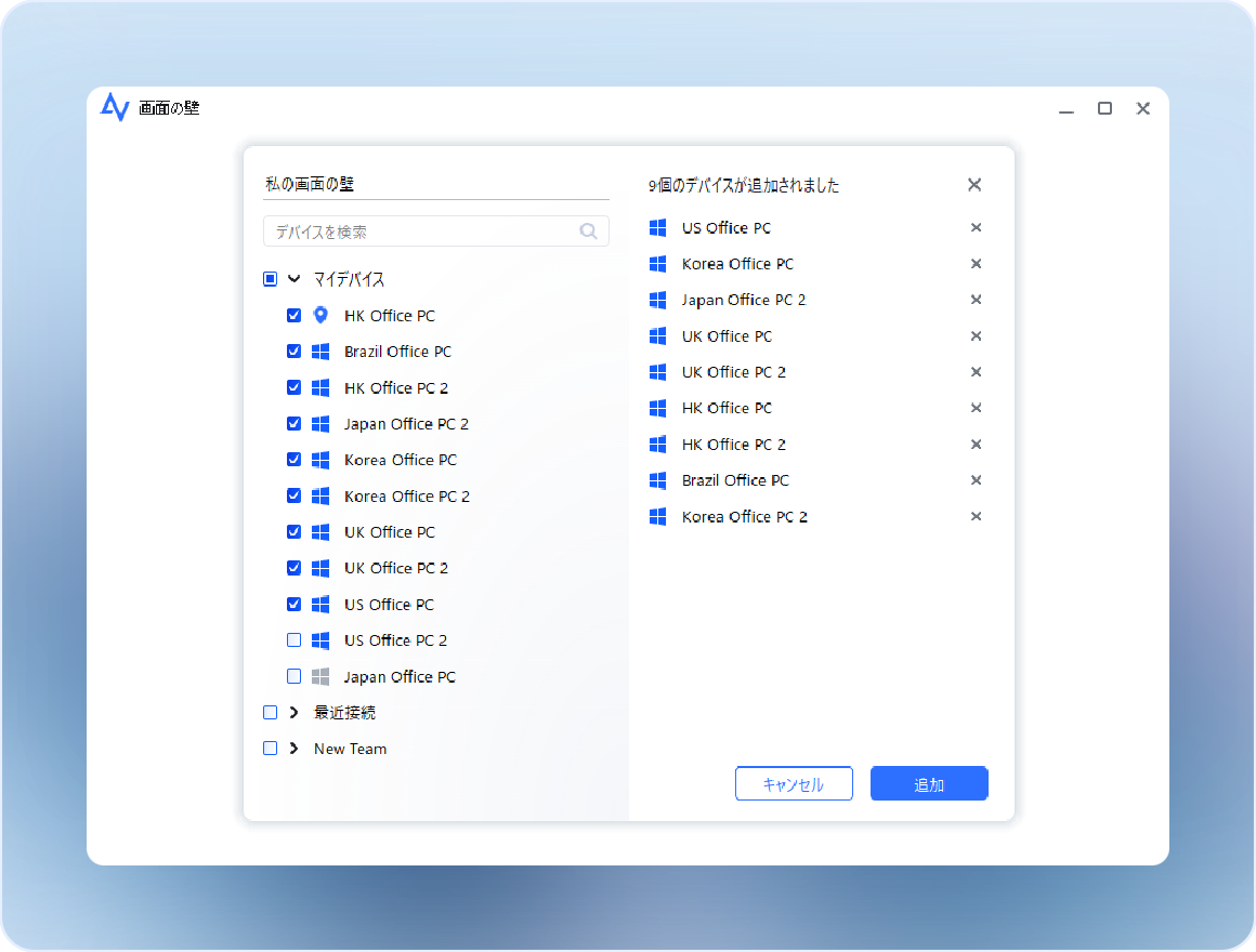 表示したいデバイスを選んで「追加」をクリック。1つの「壁」に最大24台まで登録でき、ひとつのダッシュボードからまとめてチェックできるようになります。