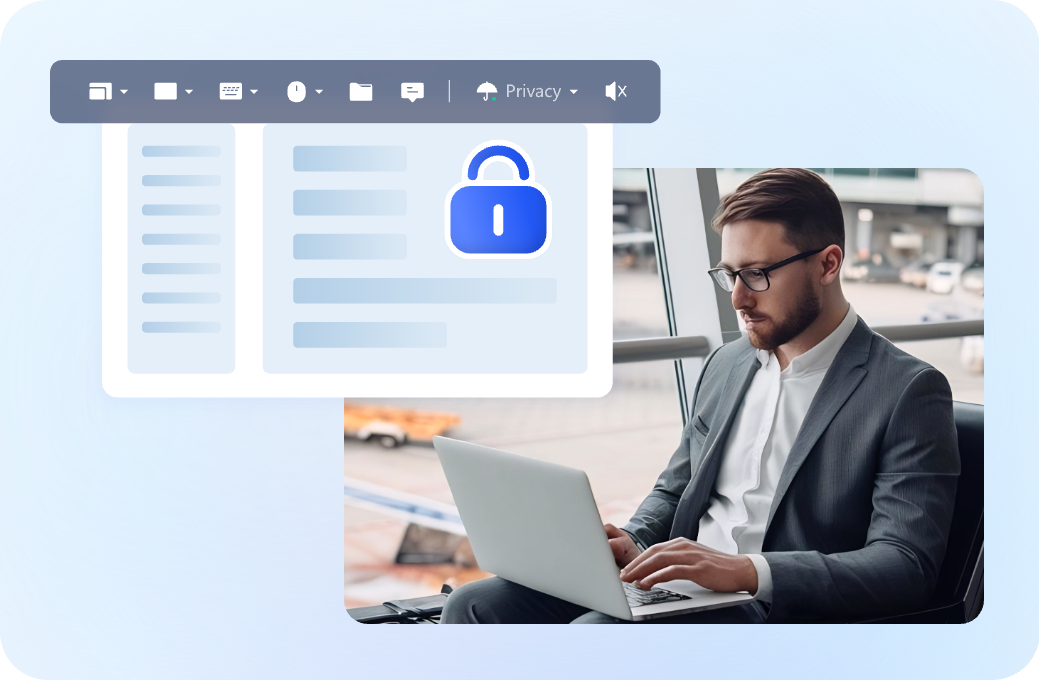 Nie pozwól, aby współpracownicy lub przechodnie obserwowali każdy Twój ruch. Włącz tryb prywatności, aby natychmiast zamienić monitor zdalnego komputera w pusty ekran. Zapewnia to, że każda osoba znajdująca się fizycznie w pobliżu komputera nie będzie mogła zobaczyć Twojego pulpitu, plików ani bieżących działań. Niezależnie od tego, czy przetwarzasz wrażliwe dane, czy prywatne zadania, Twoja zdalna sesja pozostaje w 100% poufna.