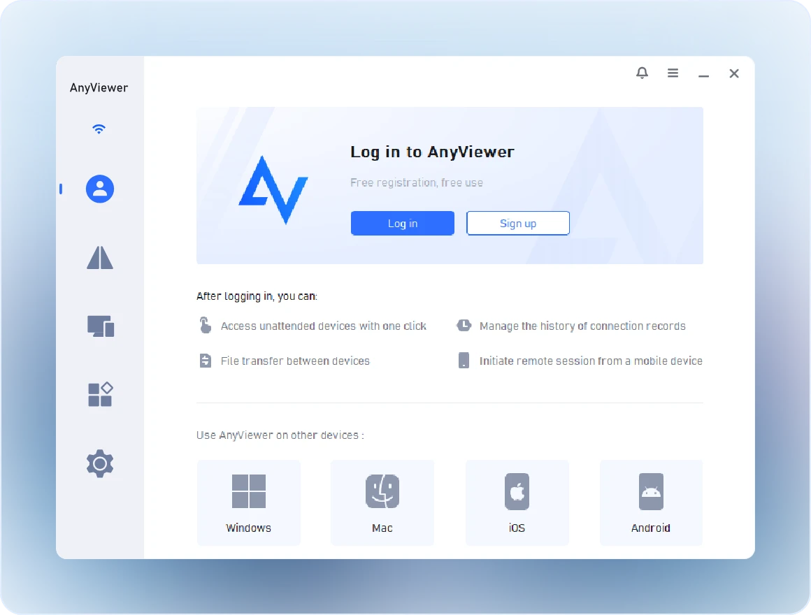 Utwórz konto i zaloguj się na to samo konto AnyViewer zarówno na urządzeniu lokalnym, jak i zdalnym.