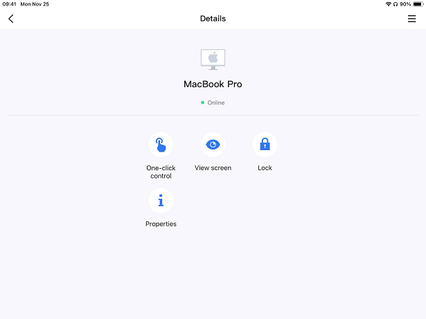 Passo 3. Está tudo pronto! Para acessar remotamente o seu Mac a partir do seu iPad, abra o aplicativo AnyViewer, selecione o seu Mac na lista e toque em "Controle com um clique" para iniciar a sessão.