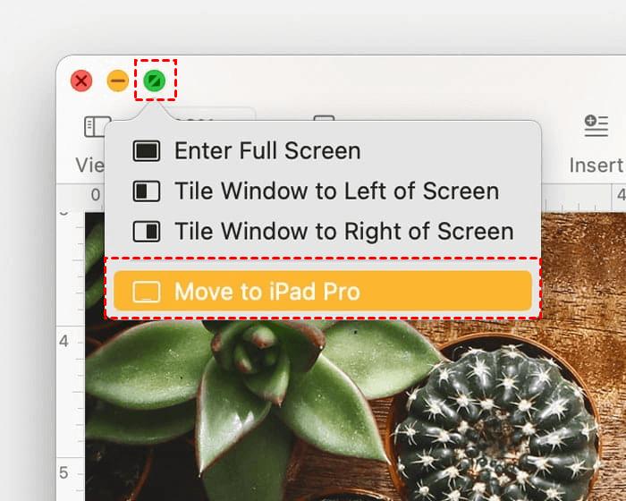 Passo 5. Posicione o ponteiro do seu Mac sobre o botão verde no canto superior esquerdo da tela e selecione a opção “mover a janela para o iPad”.