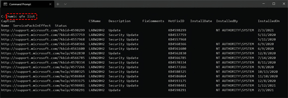方法2、使用特定的指令來檢查Windows更新記錄<