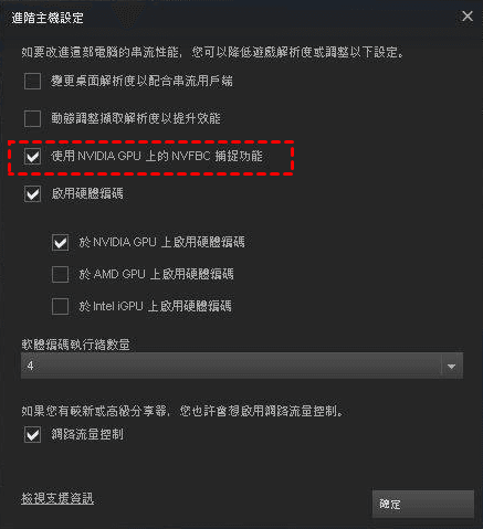 3、請先點擊【進階主機設定】。如果您的電腦為Nvidia顯示卡,請勾選【使用NVIDIA GPU上的NVFBC捕捉功能】。