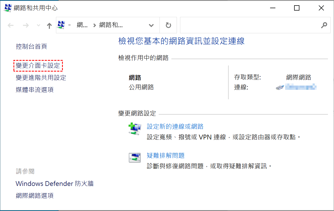 步驟1、再次前往「網路和網際網路」 > 「網路和共用中心」 > 「變更介面卡設定」。