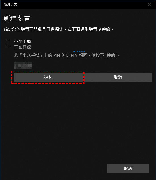 6、在“新增裝置”視窗中,選擇藍牙,並點擊您要配對的目標裝置,然後點擊“連線”。