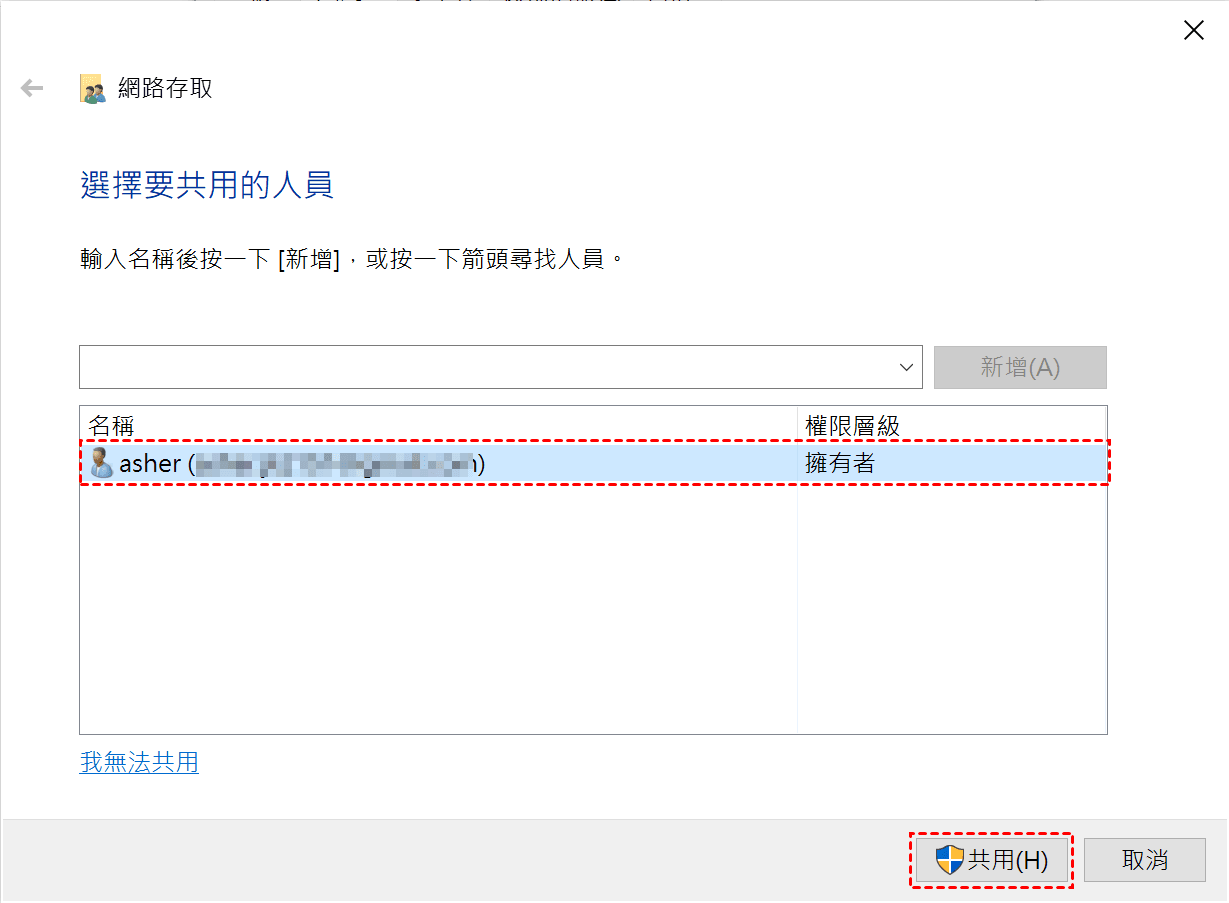 3、選取想要共用照片的使用者,並單擊「共用」。