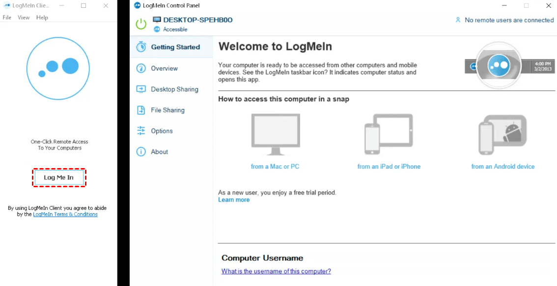 首先,您需要在客戶電腦上安裝LogMeIn。