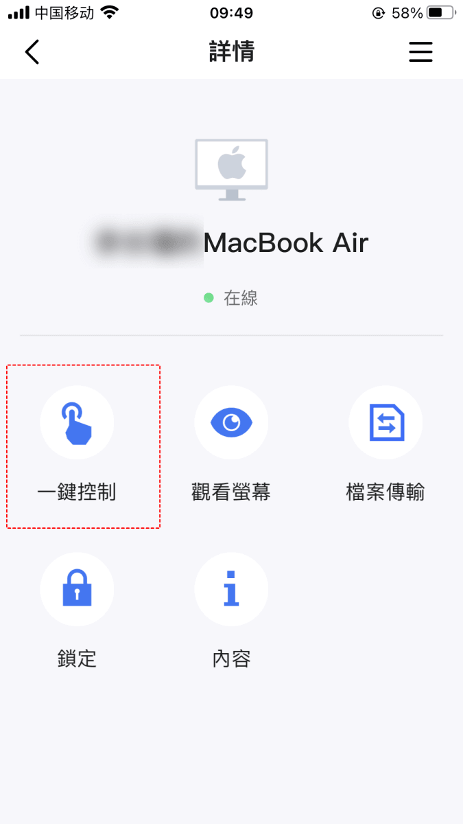步驟3.前往「設備」標籤頁,選擇您想要連線的遠端電腦,點擊「一鍵控制」。