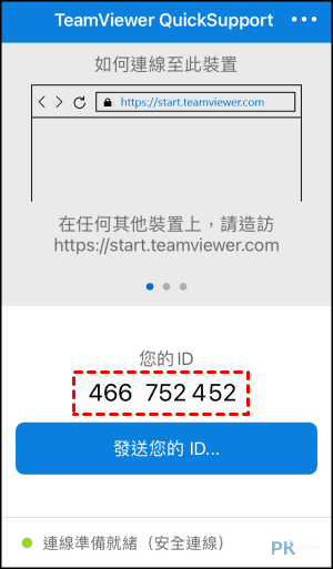 步驟1、在iPhone和iPad上,分別下載並安裝TeamViewer QuickSupport。然後,您需要在iPhone上打開TeamViewer,並記住唯一的ID。