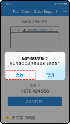 步驟3、您的iPhone將收到一個連線請求,點擊“允許”即可開始遠端檢視iPhone螢幕。