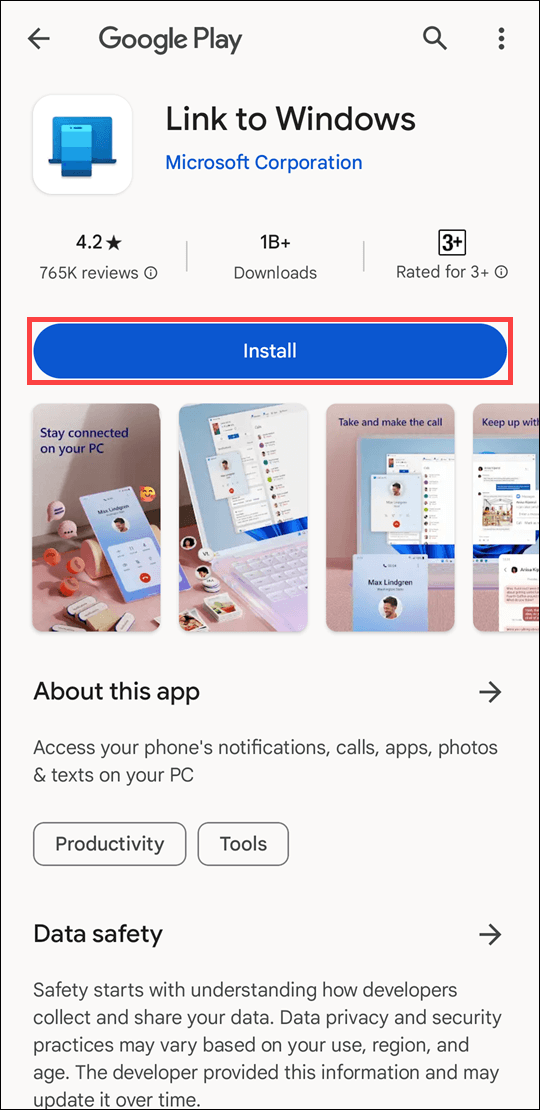 步驟 1. 在 Windows 開始功能表中搜尋「Phone Link」。