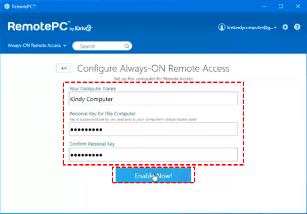 步驟2、輸入您的個人密鑰和電腦名稱以啟用遠端存取,然後點擊「立即啟用」。
