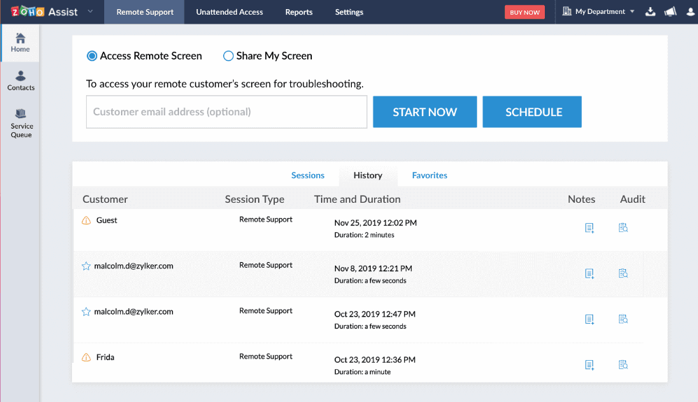 Zoho Assist提供免費的遠端支援、螢幕共享和遠端存取解決方案,讓使用者能夠存取客戶的遠端桌面,共享螢幕並管理無人值守電腦。對於合格的Zoho Assist客戶,還提供額外付費支援選項的企業支援計劃,可作為一款推薦的遠端IT支援軟體。
