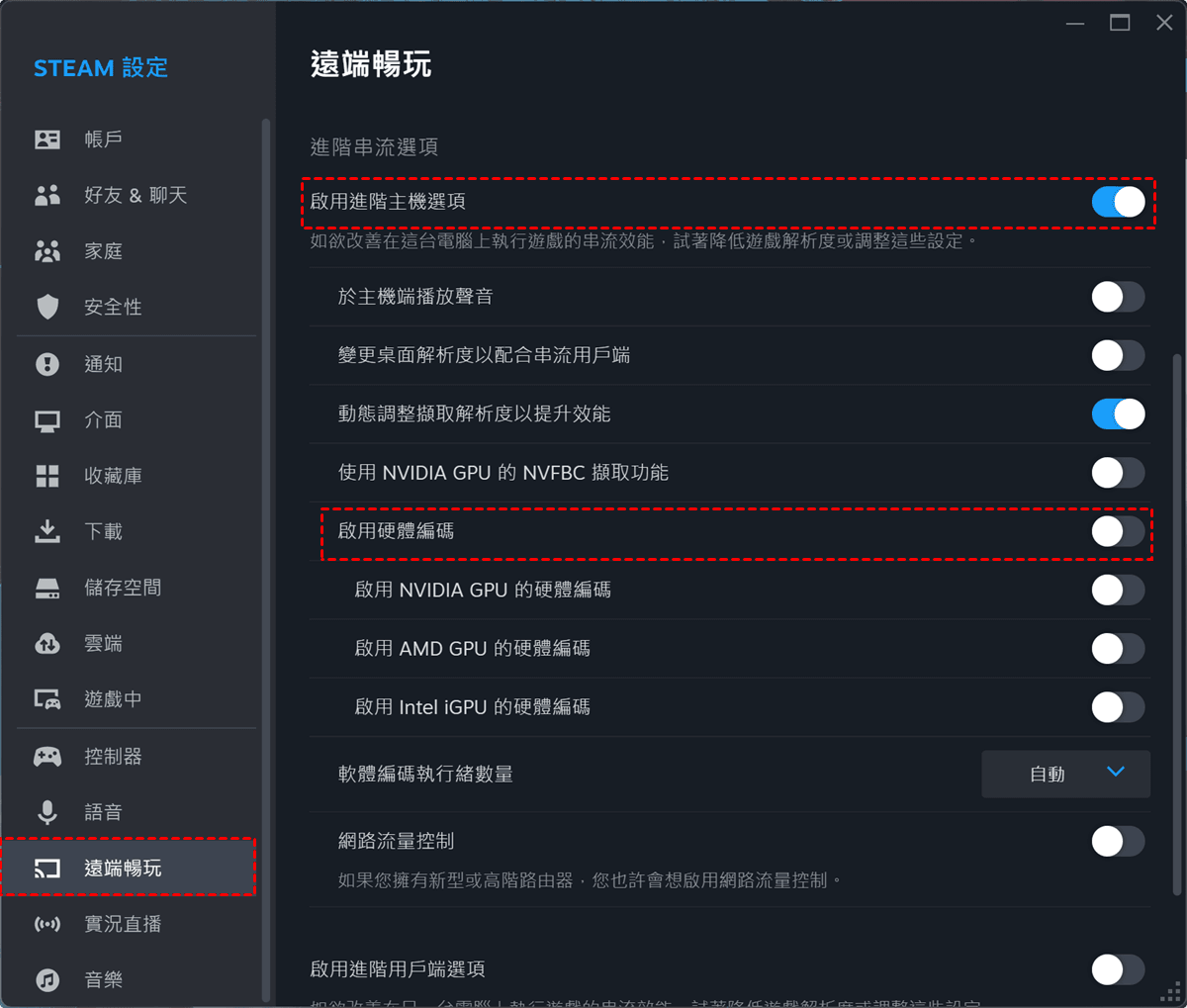步驟3、重新啟動電腦,再次前往Steam設定視窗並重新啟用遠端暢玩。