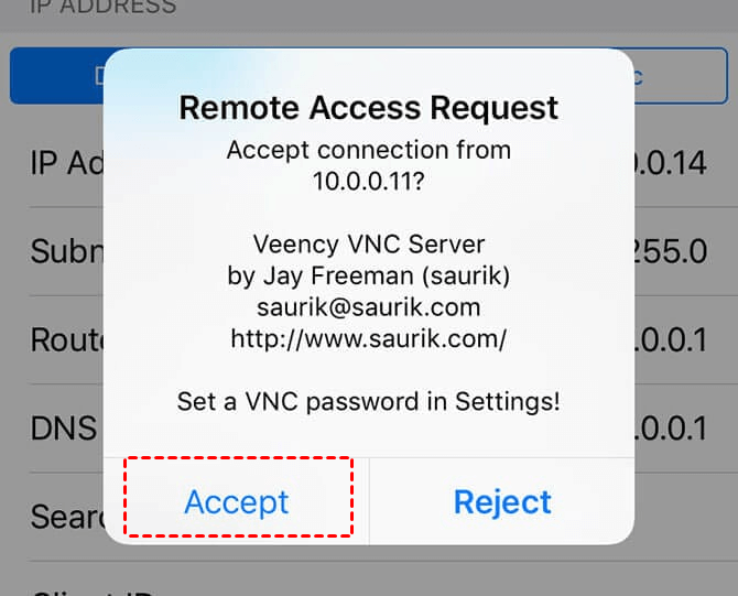 步驟4、然後,您的iPhone上將收到一個連線請求。接受請求後,您將能夠在桌面上的VNC用戶端中遠端檢視iPhone螢幕。