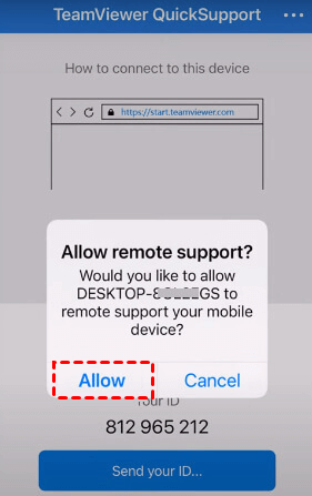 步驟4、您的iPhone將會收到一個連線請求,只需點擊“允許”即可接受連線。然後,您可以遠端檢視iPhone畫面了。