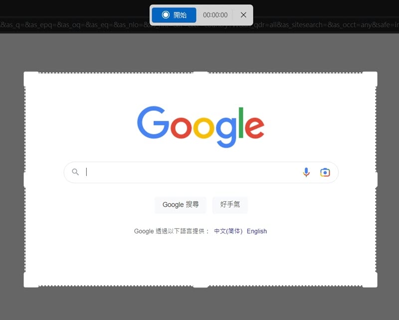 步驟3.畫面會變成灰色,拖曳滑鼠確定錄製區域。
