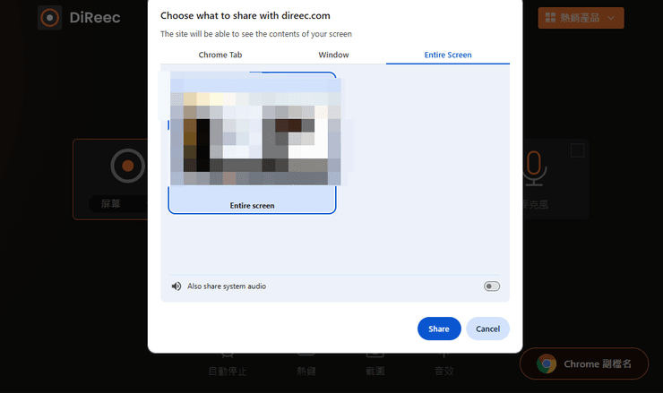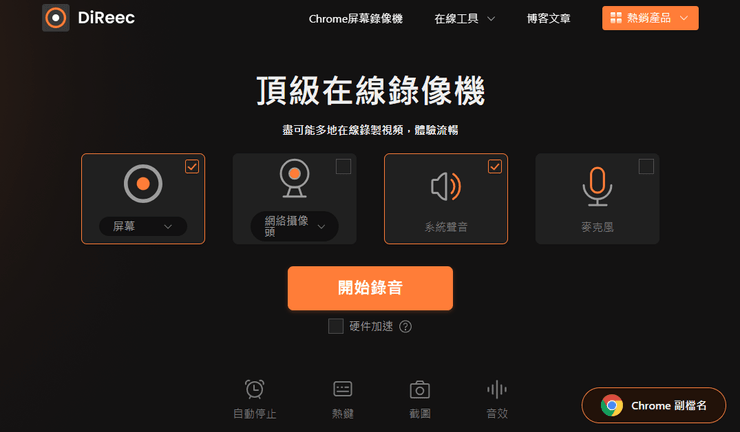推薦工具:DiReec 免費線上螢幕錄影器,它支援螢幕+麥克風+攝影機同步錄製,操作門檻幾乎是零。